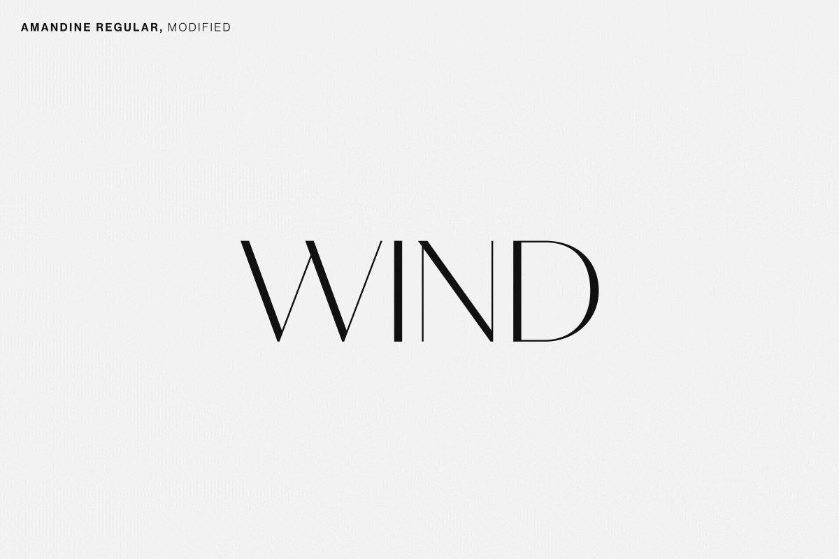 Generous tracking to make space for the fresh, airiness of the wind on the ocean. Extending the L to create connecting and focus. Lifting the O to highlight a quirky hero.