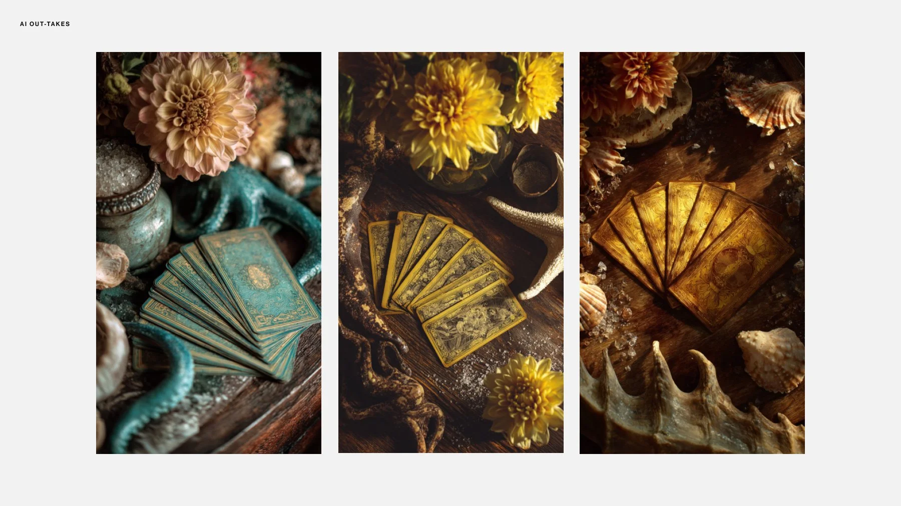 While reading this book, I could not get over how mismatched the cover design felt from the charm, wit, & sharpness of the story. Using generative AI (MidJourney) I quickly visualized the scene I was imagining. A tabletop full of the most powerful symbols from the story – glowing sea serpents, ornate tarot cards, dashing flowers. I tried to get some sea-spray in there, but MidJourney didn’t quite know how to handle that.